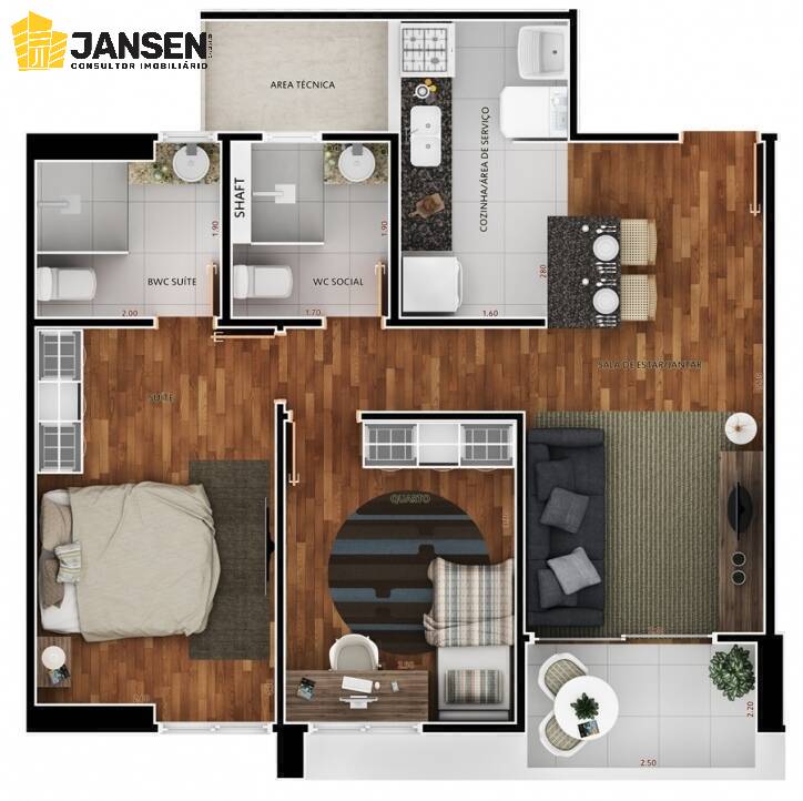 Apartamento com projeto do escritório ARAM arquitetura distribuído em 59m2, composto por 02 quartos, sendo 01 suíte, sala para dois ambientes, varanda, wc social, cozinha, área de serviço e 02 vaga de garagem. Ambientes com móveis projetados em alto padrão (Bontempo) e pensado para otimizar todos os espaços de forma que atenda a qualquer família.
