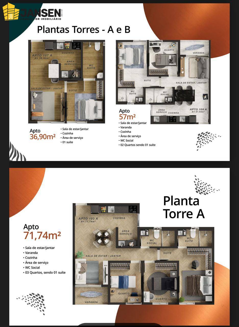 Apartamento com 02 quartos, sendo 01 suíte, sala para dois ambientes, wc social, varanda gourmet, cozinha, área de serviço, uma vaga de garagem.